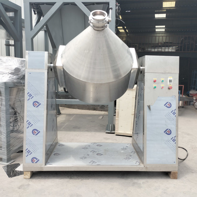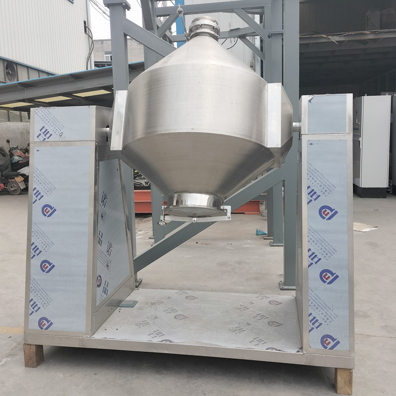 The double-cone mixer is a classic mixing equipment widely used in industries such as chemical engineering, pharmaceuticals, food, and feed. Its core component is a unique double-conical rotating body. Through an ingenious support design, the entire mixing cylinder can rotate smoothly. This equipment is renowned for its efficient mixing capability, enabling the rapid uniform fusion of dry powder particles with different physical properties. Additionally, it has advantages such as high mixing uniformity, large loading capacity, stable operation, and easy operation. In the design, it fully considers the needs of users, with thorough discharging and no residue, and is easy to clean, meeting the strict GMP production standards for cleanliness requirements. Therefore, the double-cone mixer is a reliable and crucial equipment for achieving efficient and high-quality mixing of powders and particles in modern industrial production.